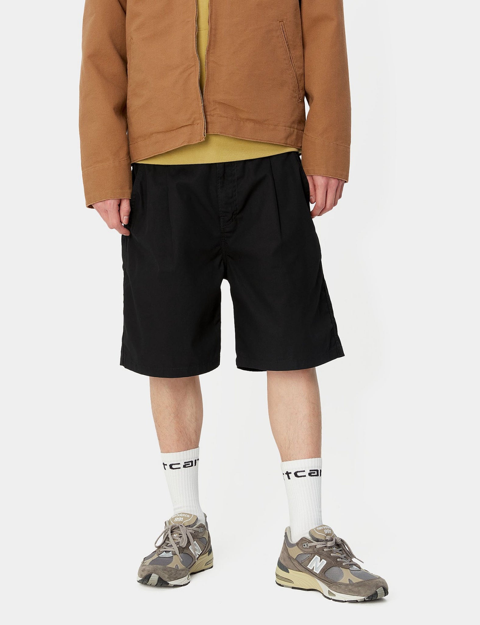 The Albert Short made in black is crafted from durable, lightweight cotton twill in a regular fit and boasts a classic touch with single front pleats. The shorts are also adorned with practical triple stitching. Finished off with a woven square label branding on the back pocket, this design has it all.