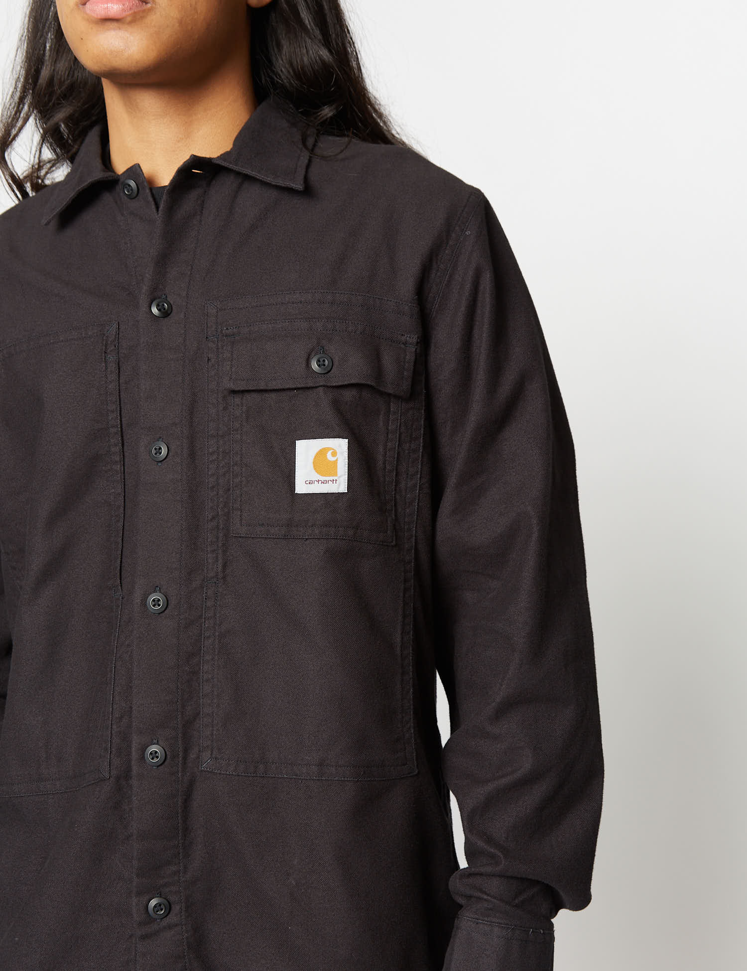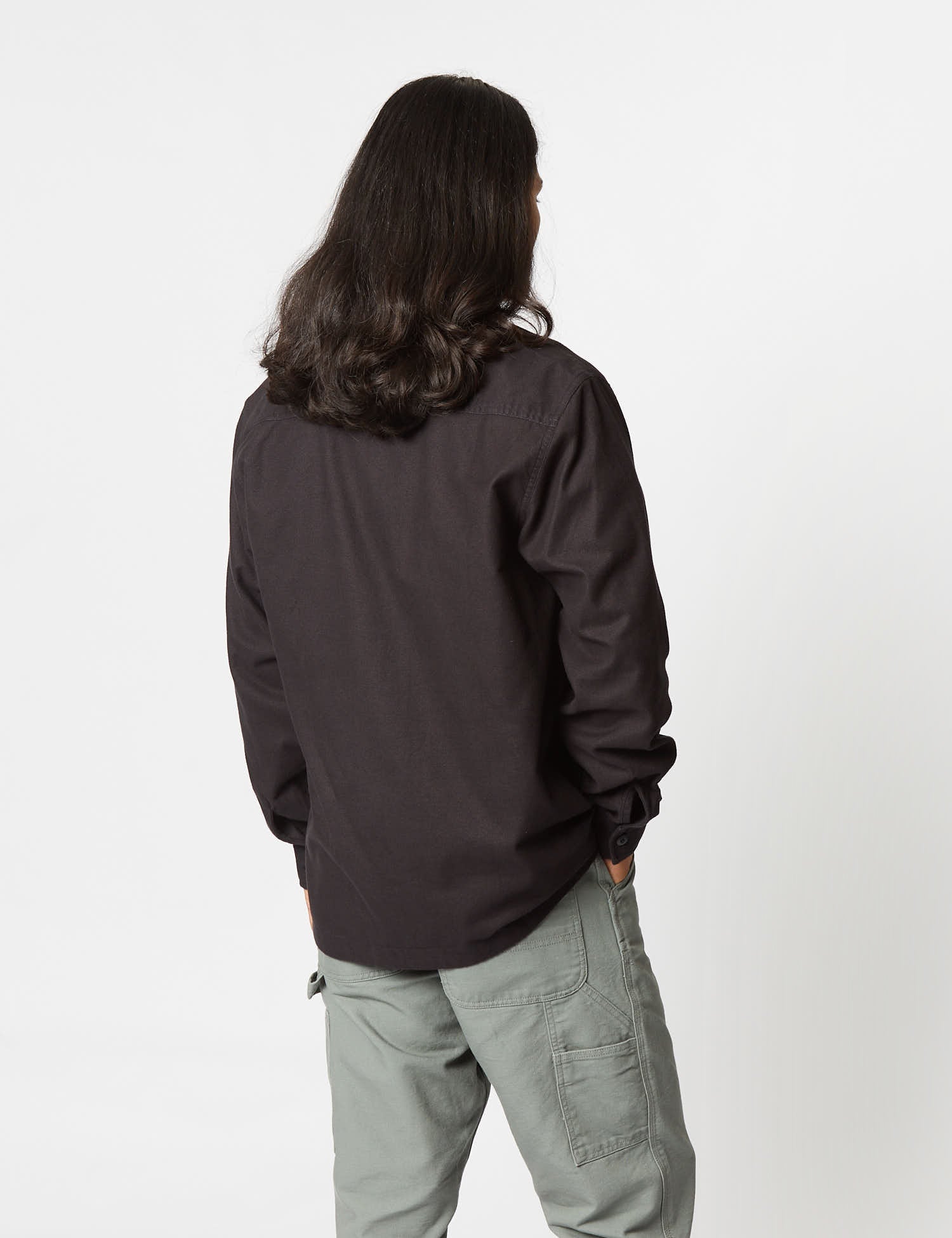 TheCharter long sleeve shirt in black a lightweight cotton twill flannel in a loose fit with two large pockets and an extra chest pocket.