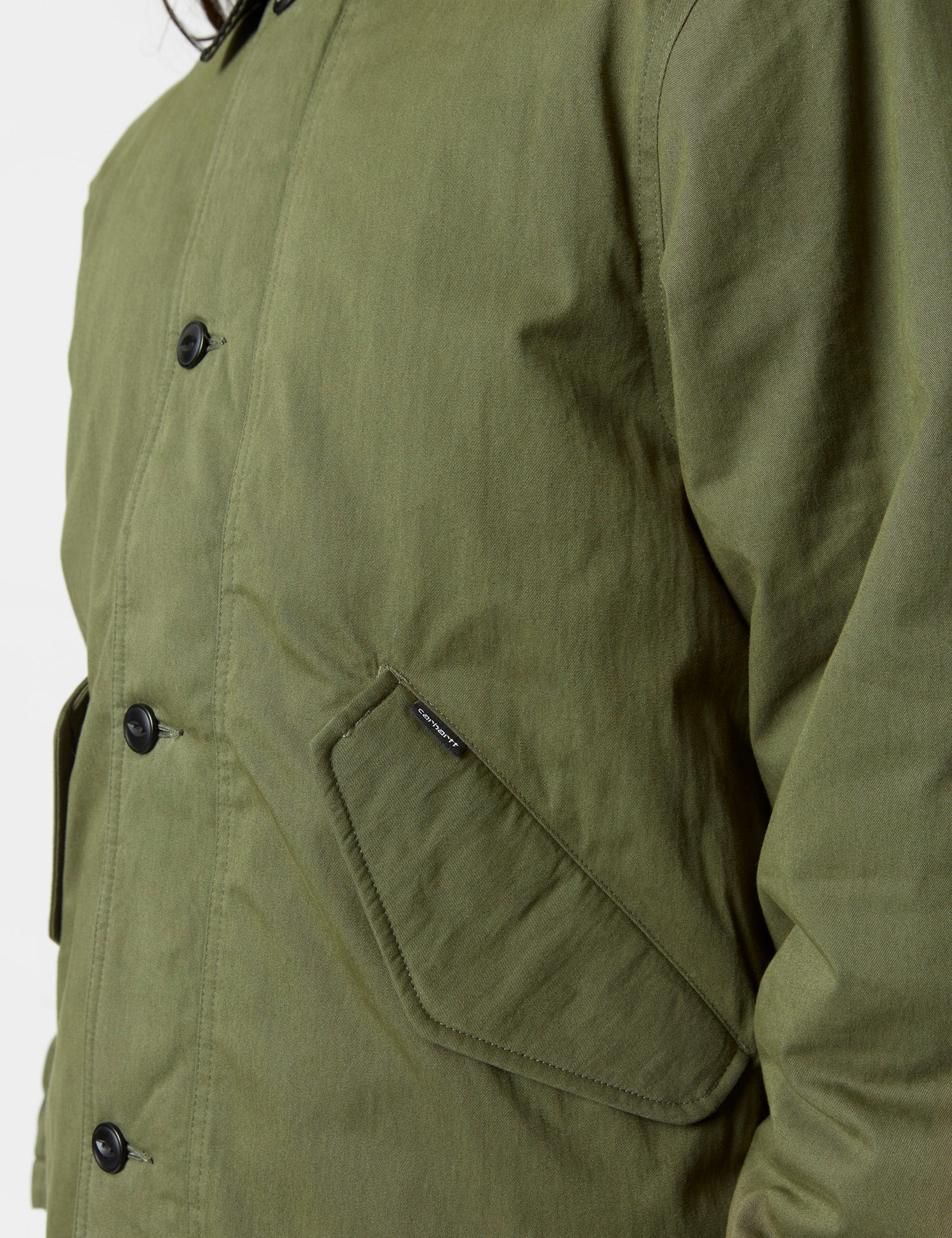 TheDeclan Jacket in Cypress green made with water-repellent cotton and recycled nylon twill, make it the perfect choice for unpredictable weather.