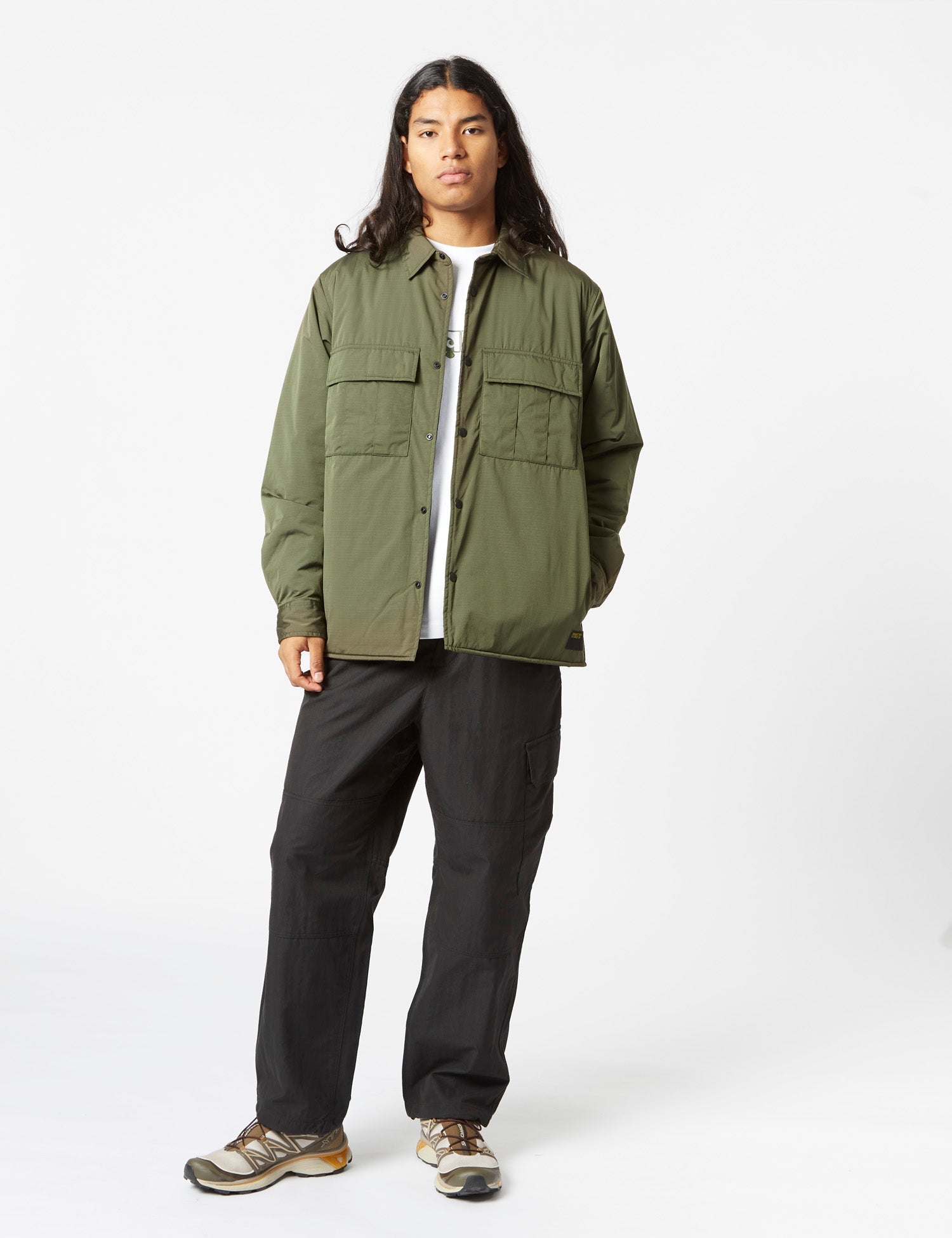 The Fresno Over Shirt in Cypress Green is a sight to behold! Crafted of lightweight, water-repellent nylon ripstop, and onion-quilted within, it features a pop-color recycled nylon lining. Two chest pockets and a woven military label round out the package - it's a showstopper!