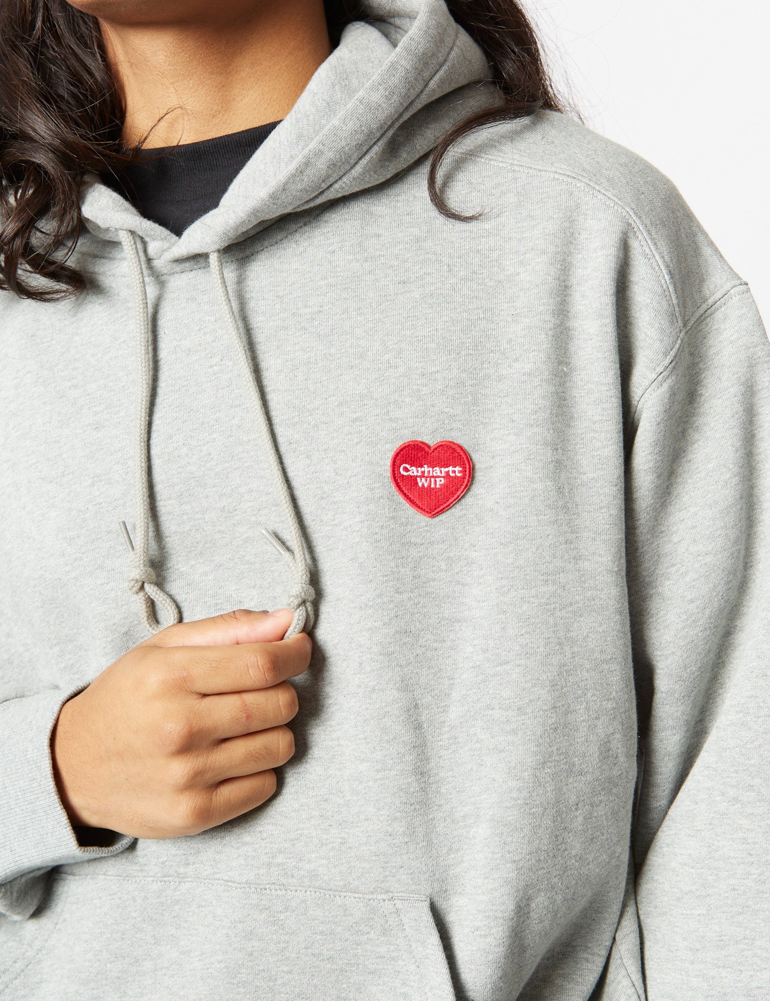 Heart Patch Hooded Sweatshirt - Grey Heather
