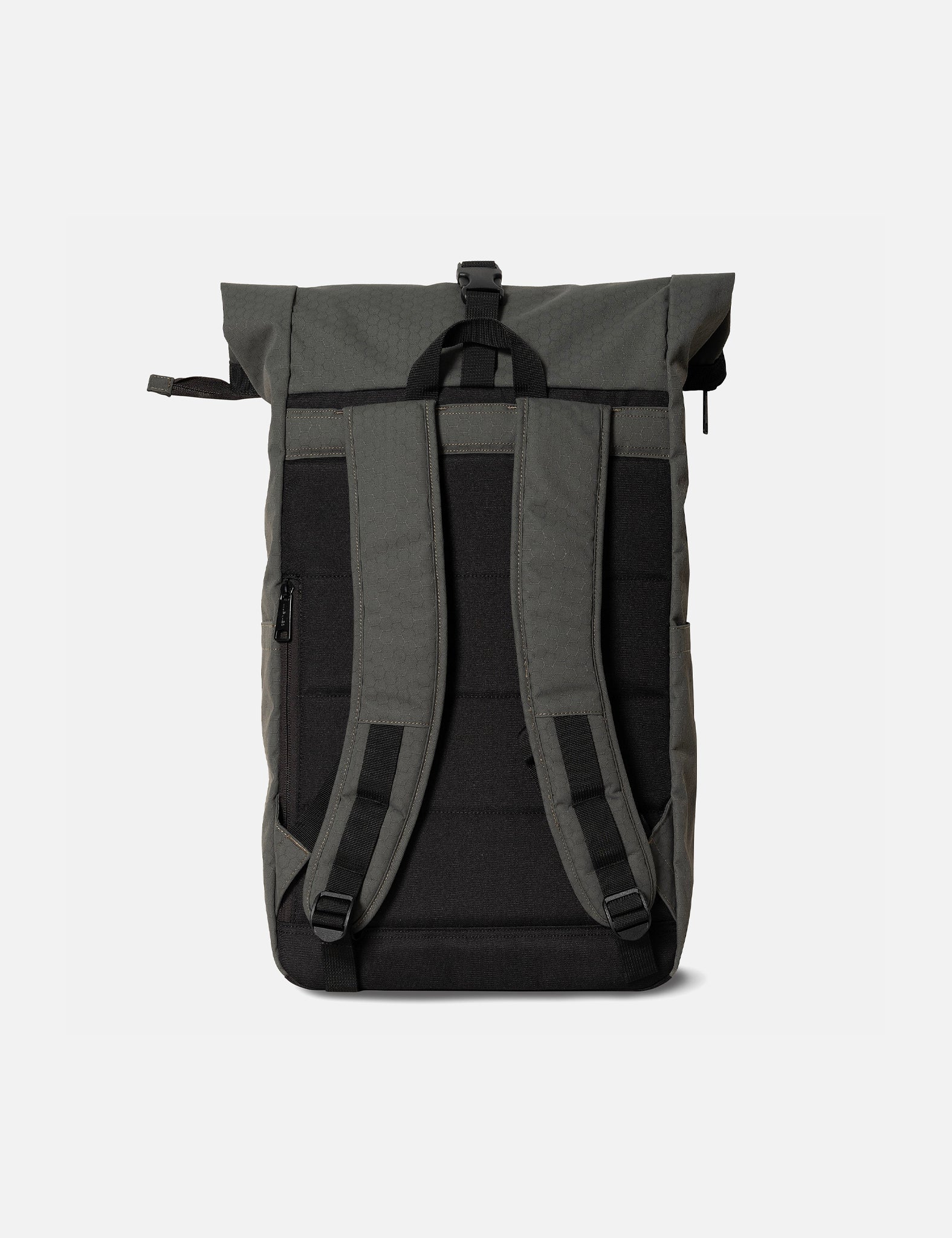 TheLeon Rolltop Backpack fromisconstructed from recycled polyester in a hexagonal, water-repellent ripstop weave.