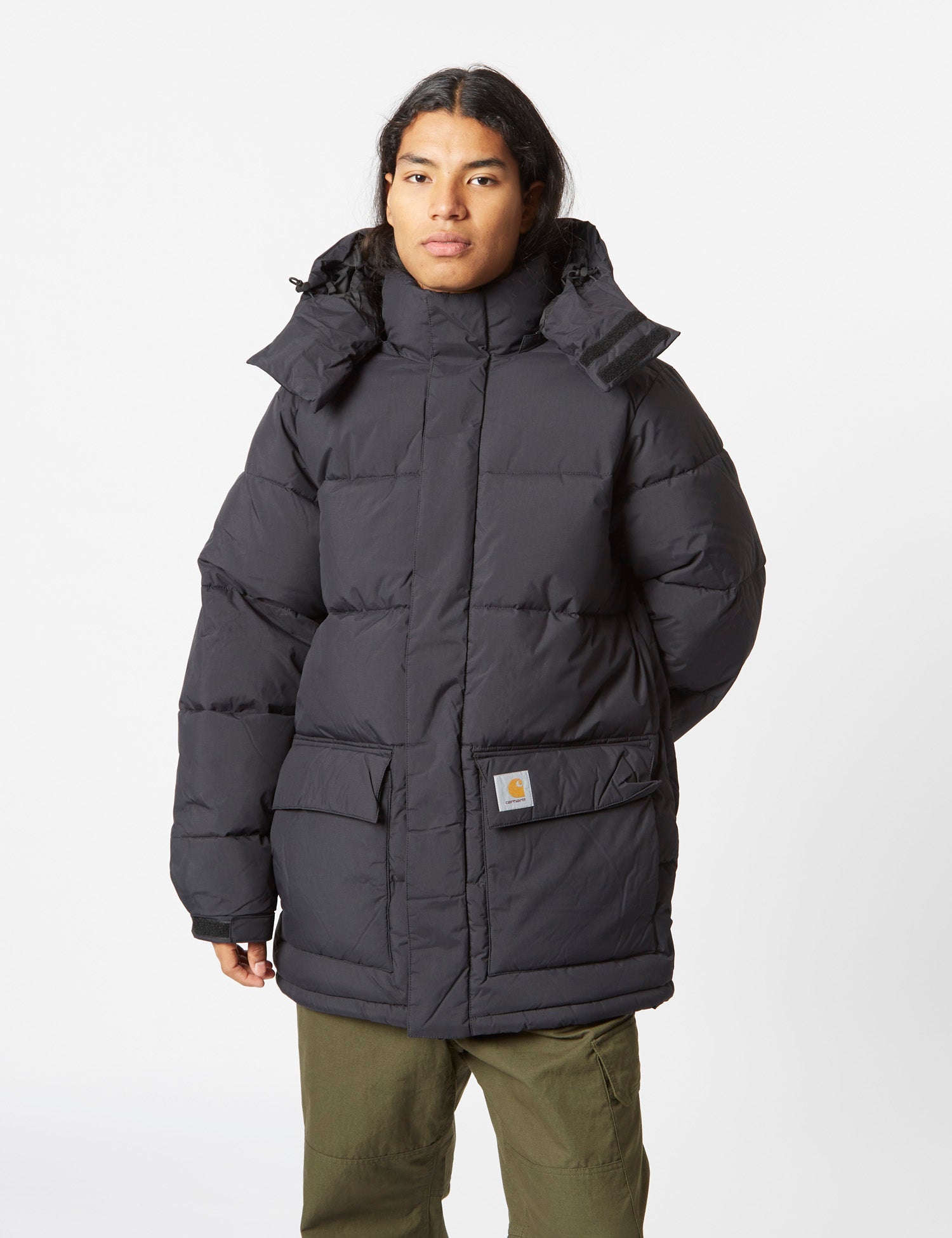 TheMilter jacket in blackbuilt with lightweight, water-repellent nylon poplin and filled with artificial down for extra insulation.