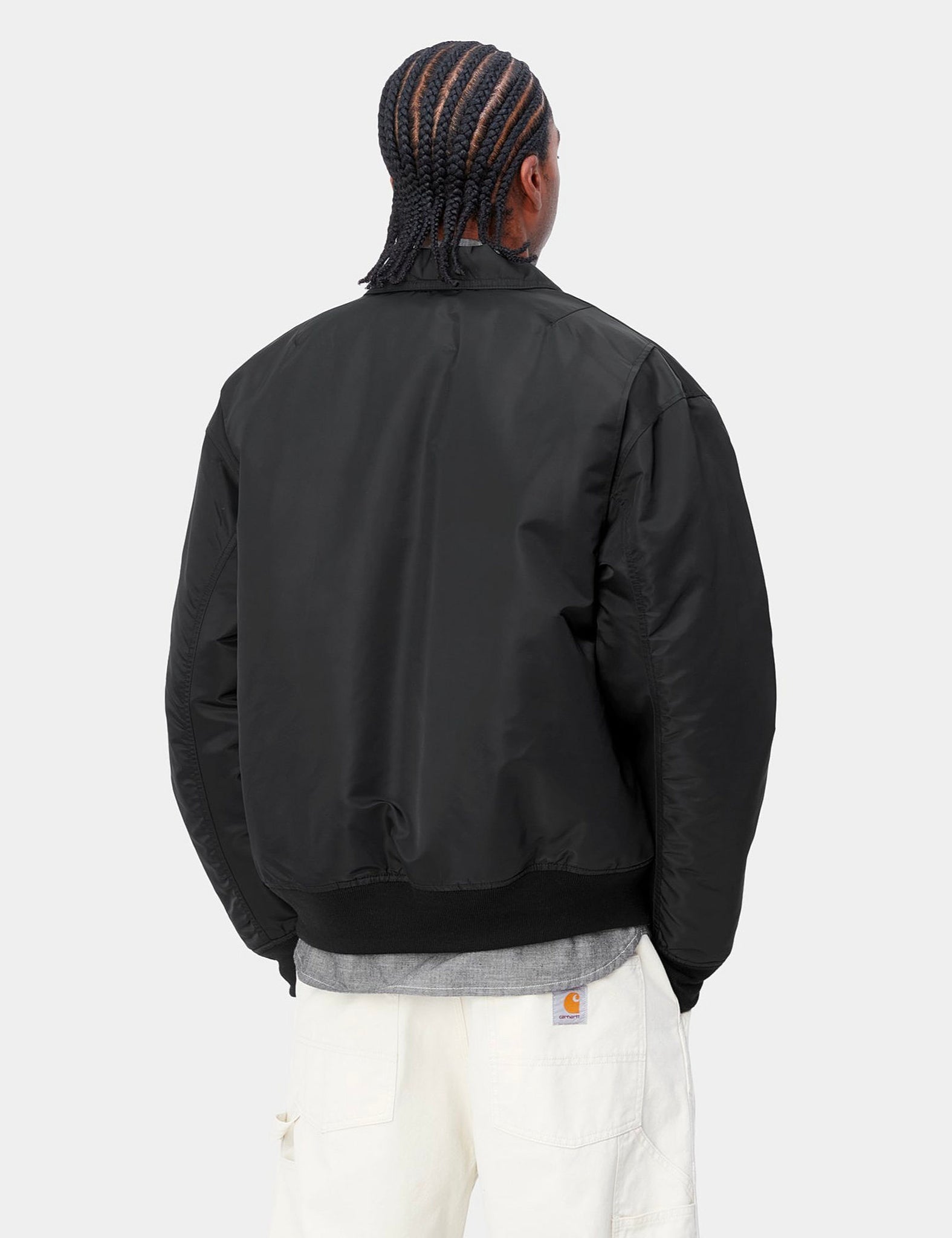 TheOlten bomber jacket in black from . This military-inspired bomber features a water-repellent nylon twill exterior and nylon taffeta lining for superior protection and insulation.