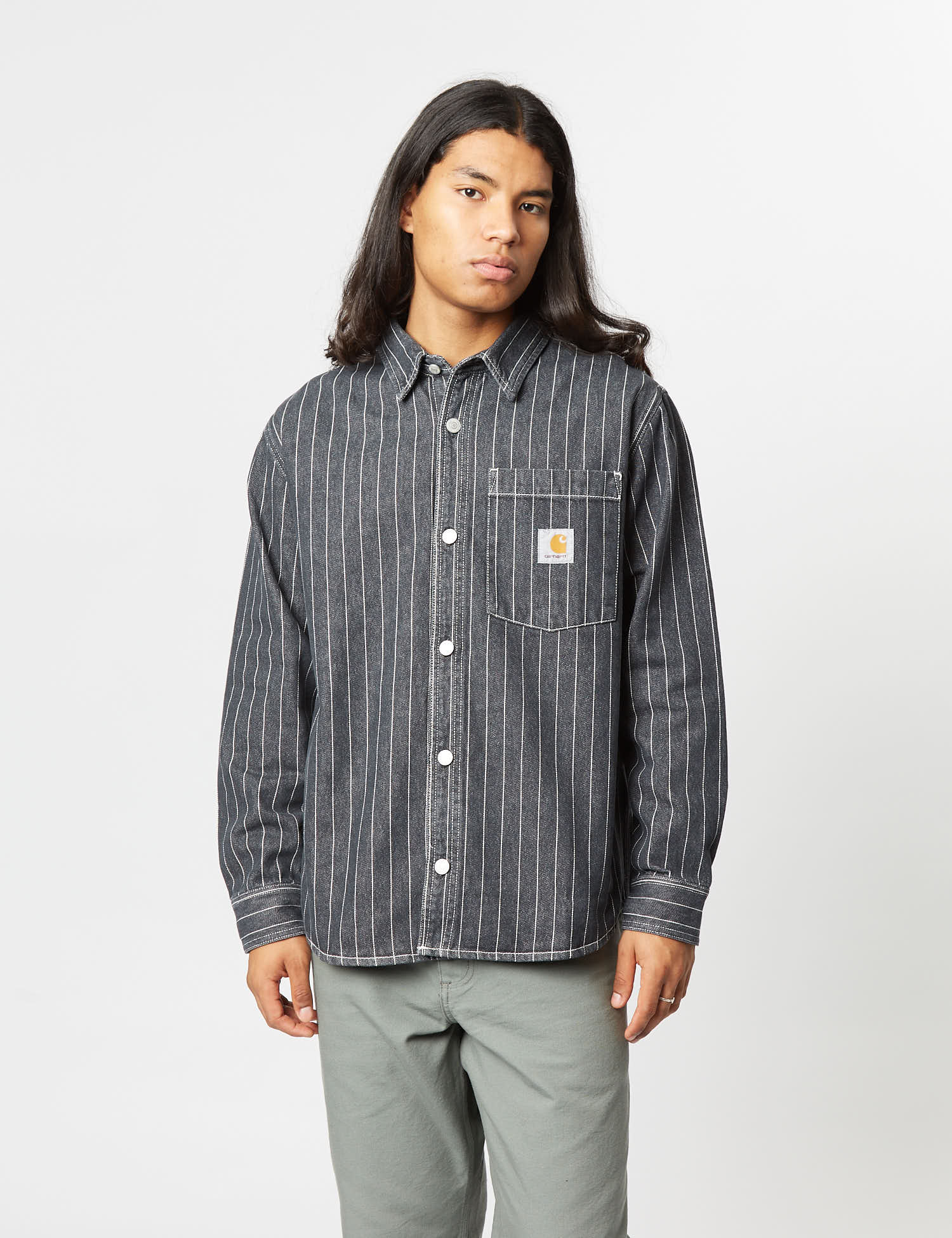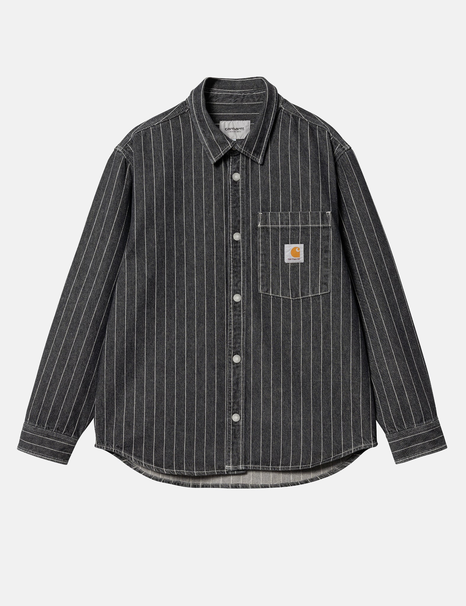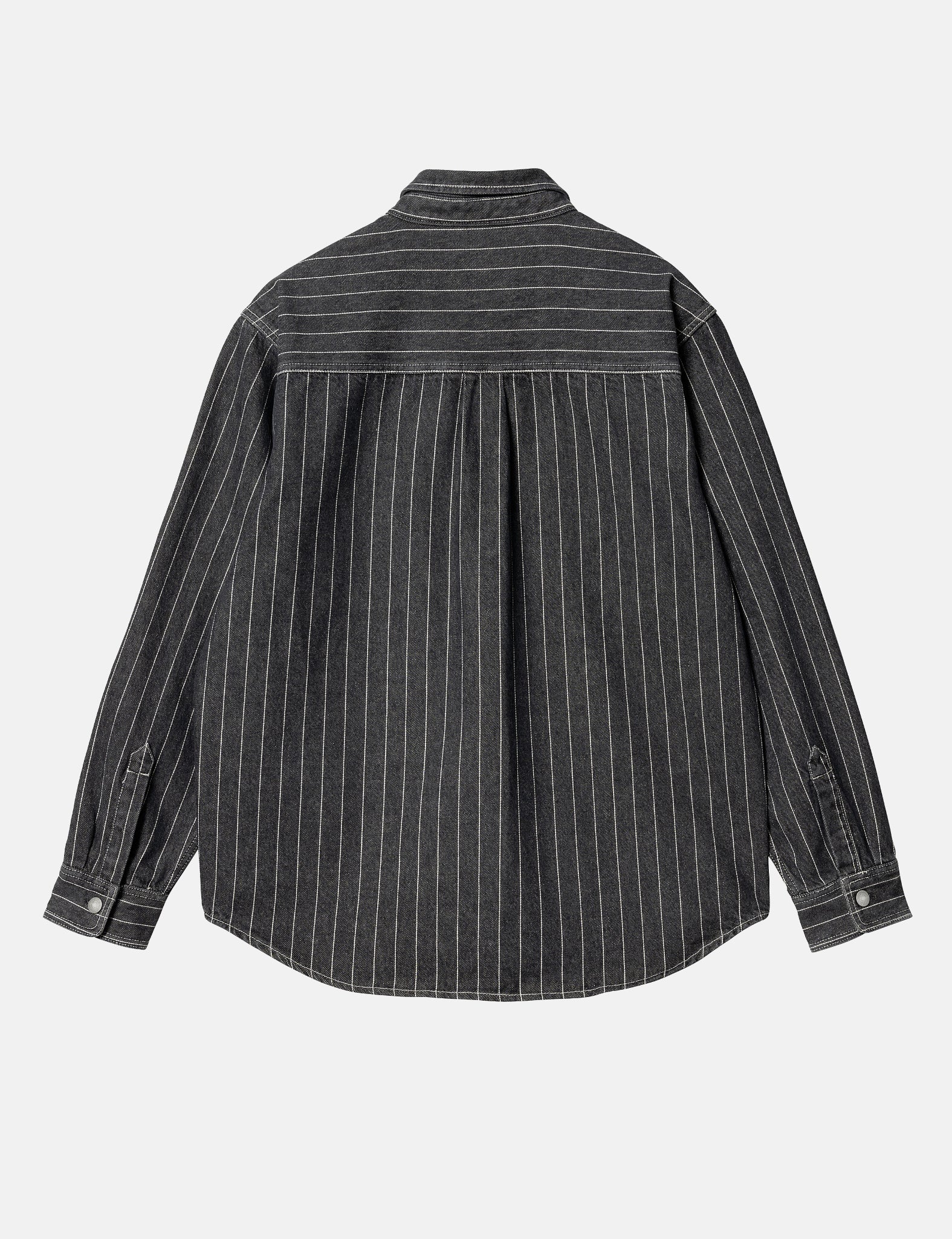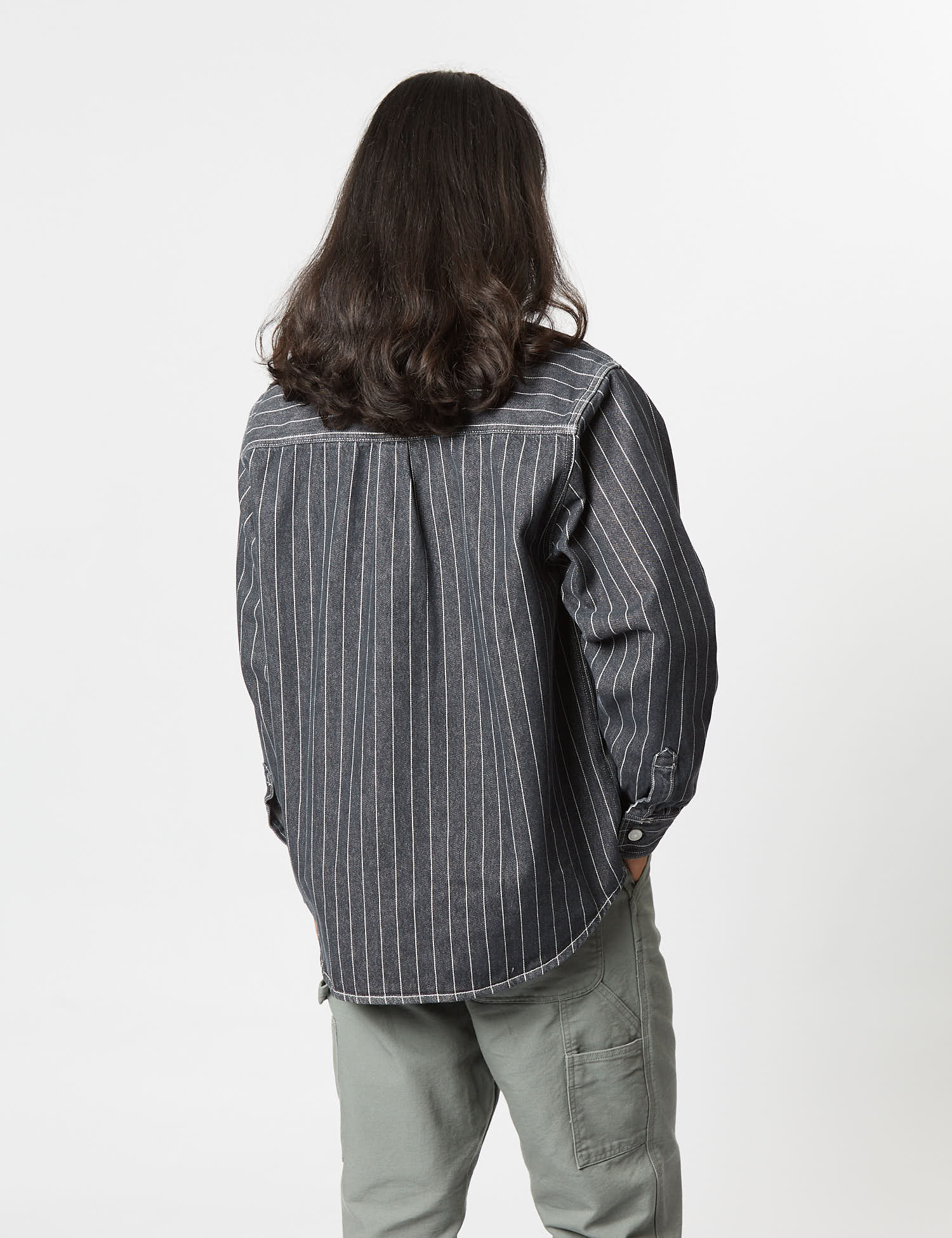 TheOrlean stripe overshirt in blacka head-to-toe statement-maker, combining robust hickory stripe denim with a unique, stone-washed look.