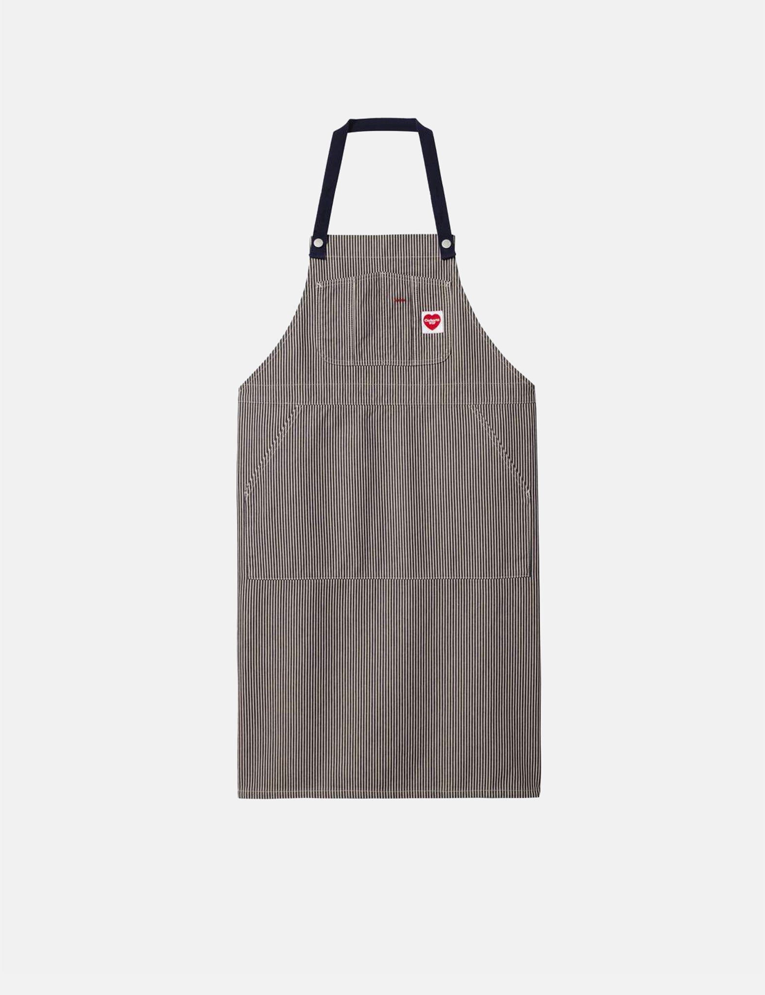 The Terrell Apron is a hardwearing apron crafted from midweight, hickory striped Terrell fabric.